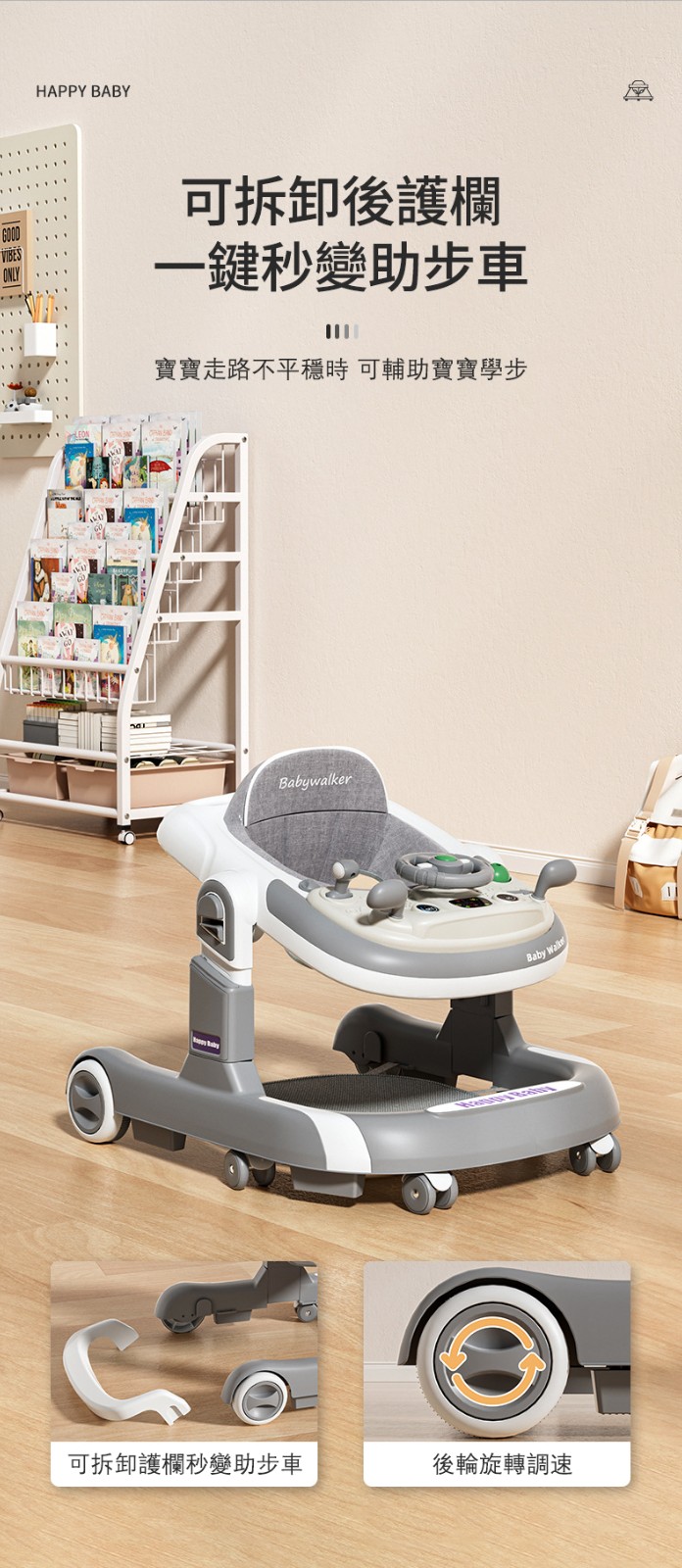 一鍵調節 變助步車 4檔高度調節防止寶寶O型腿