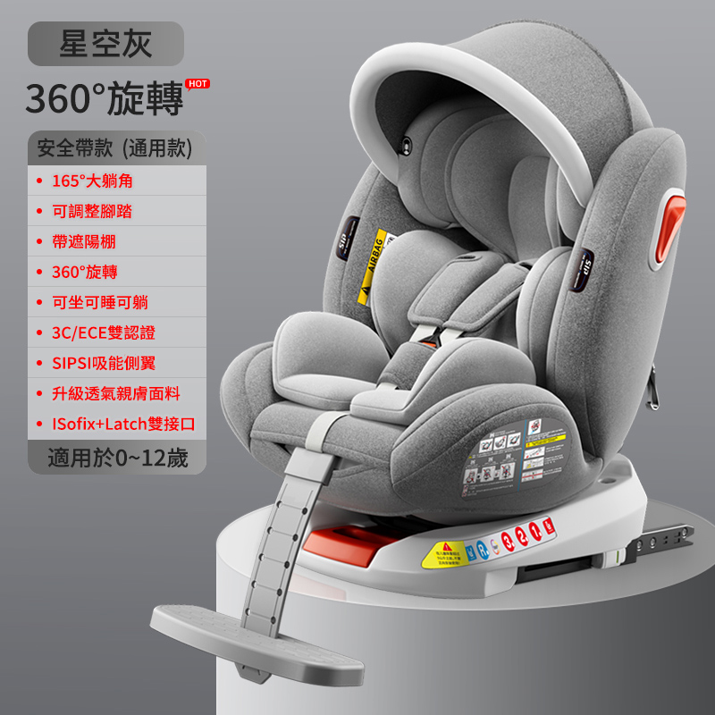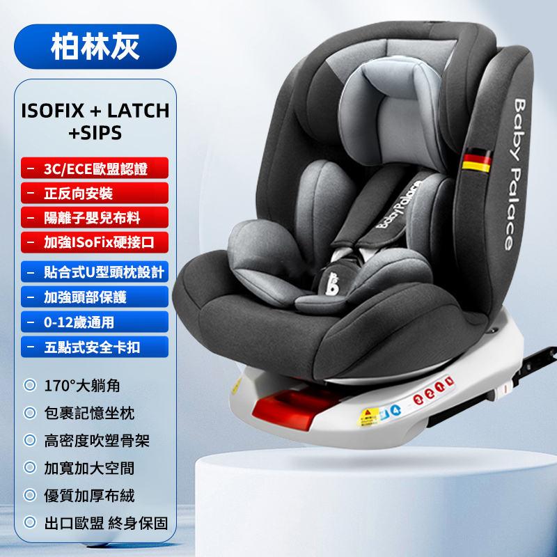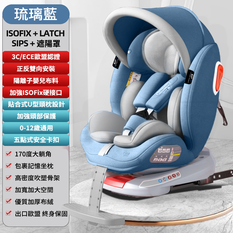 【ISOFIX硬接口+LATCH+遮阳棚+170°躺角】U型侧翼防护
