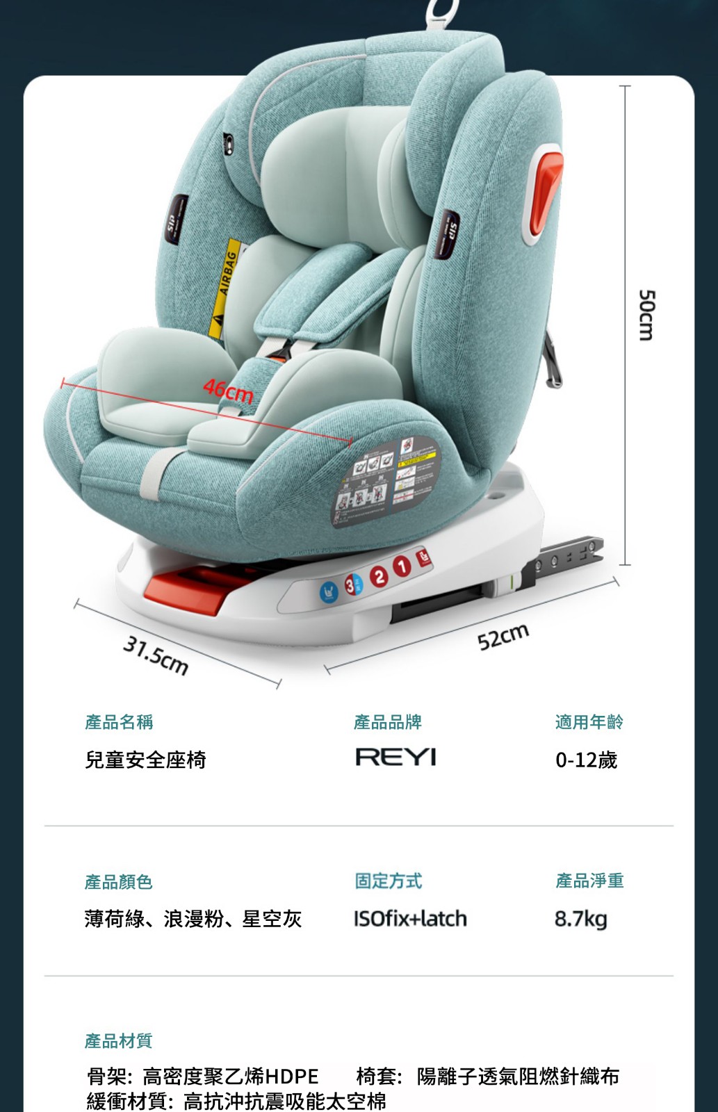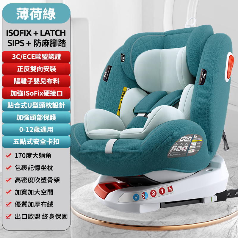 【ISOFIX硬接口+LATCH+170°躺角】U型側翼防護
