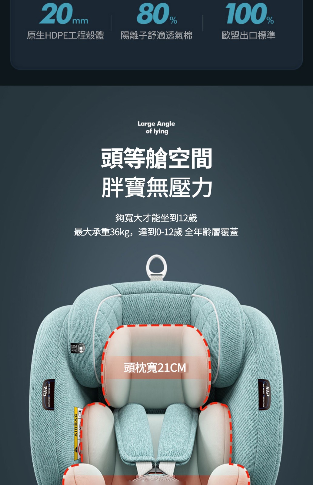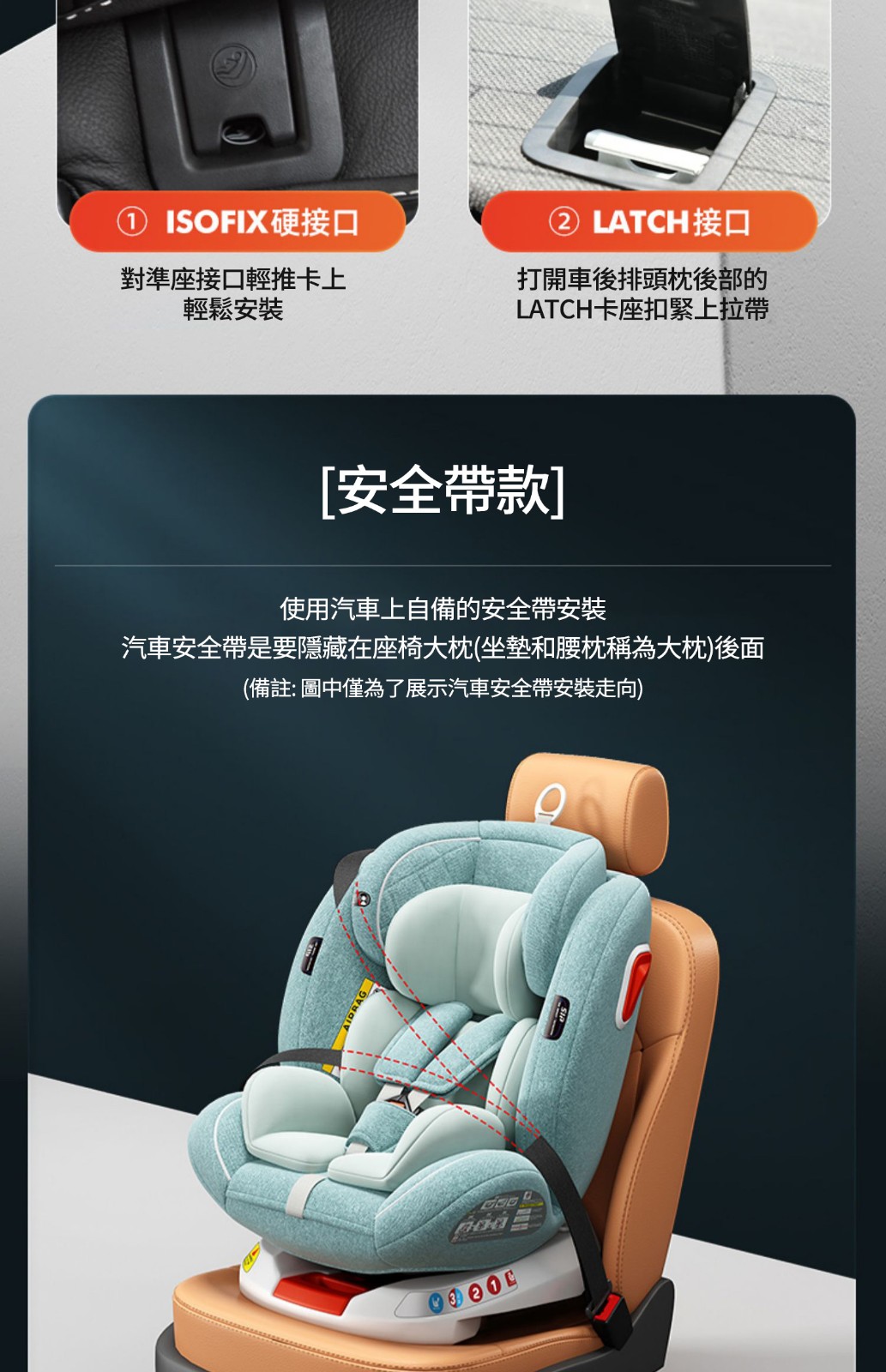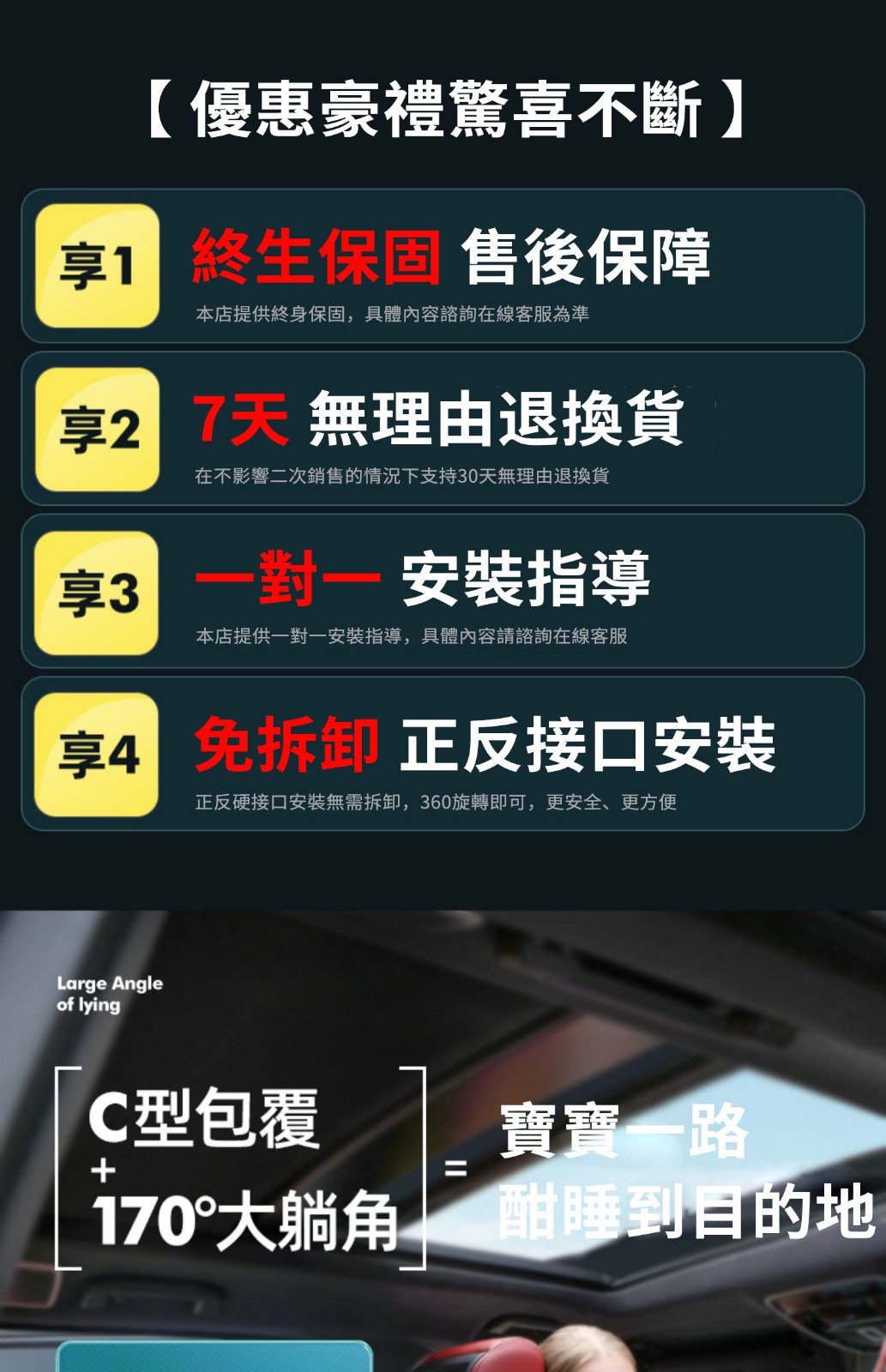 【安全帶款+170°躺角+U型側翼防護】