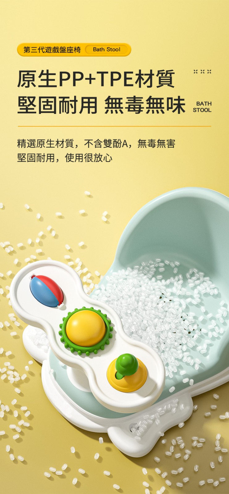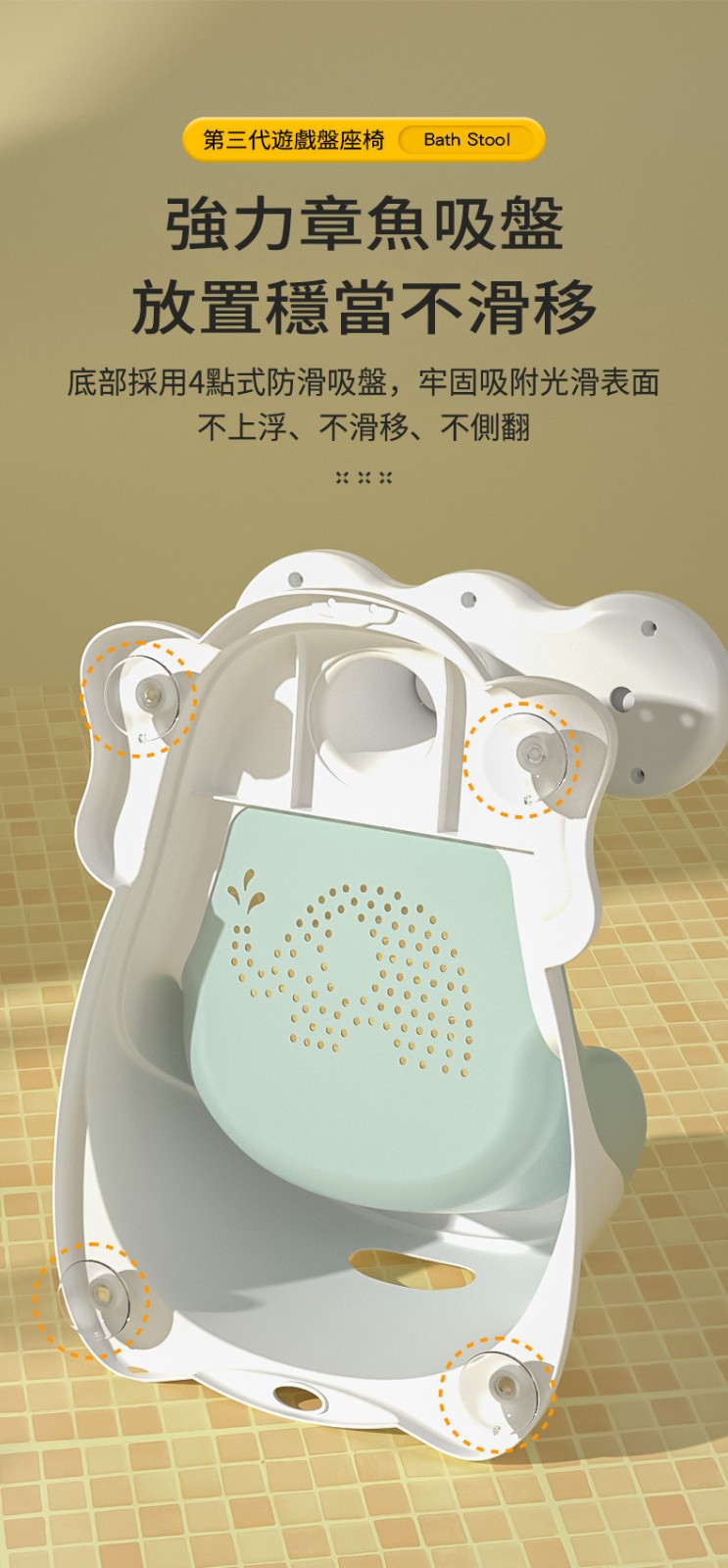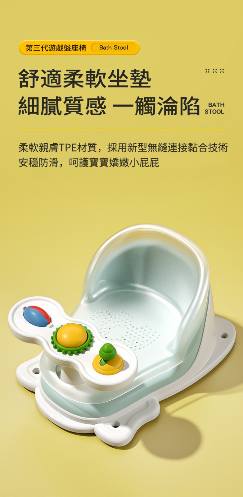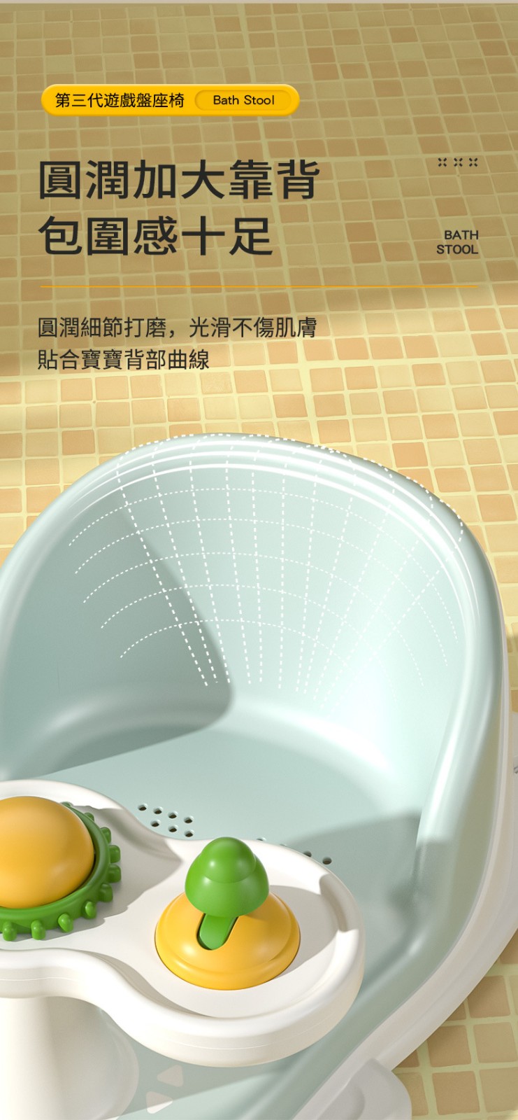 多功能洗浴座椅,讓寶寶隨心所欲!【第三代遊戲盤座椅】原生PP+TPE材質,強力吸盤,穩固不跑滑,網孔設計透氣不傷PP