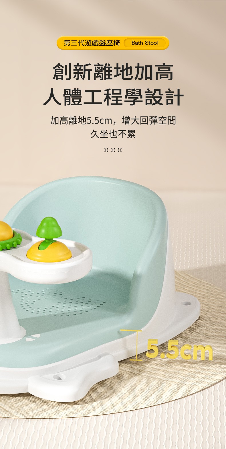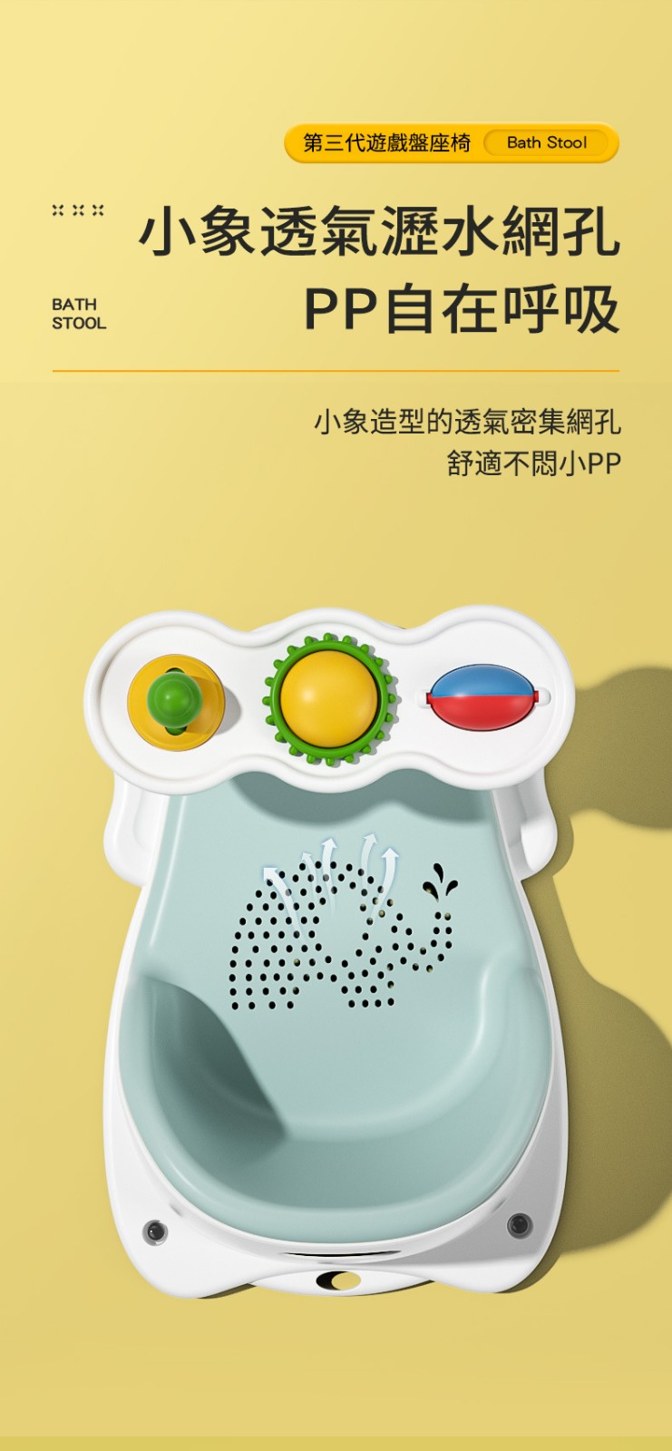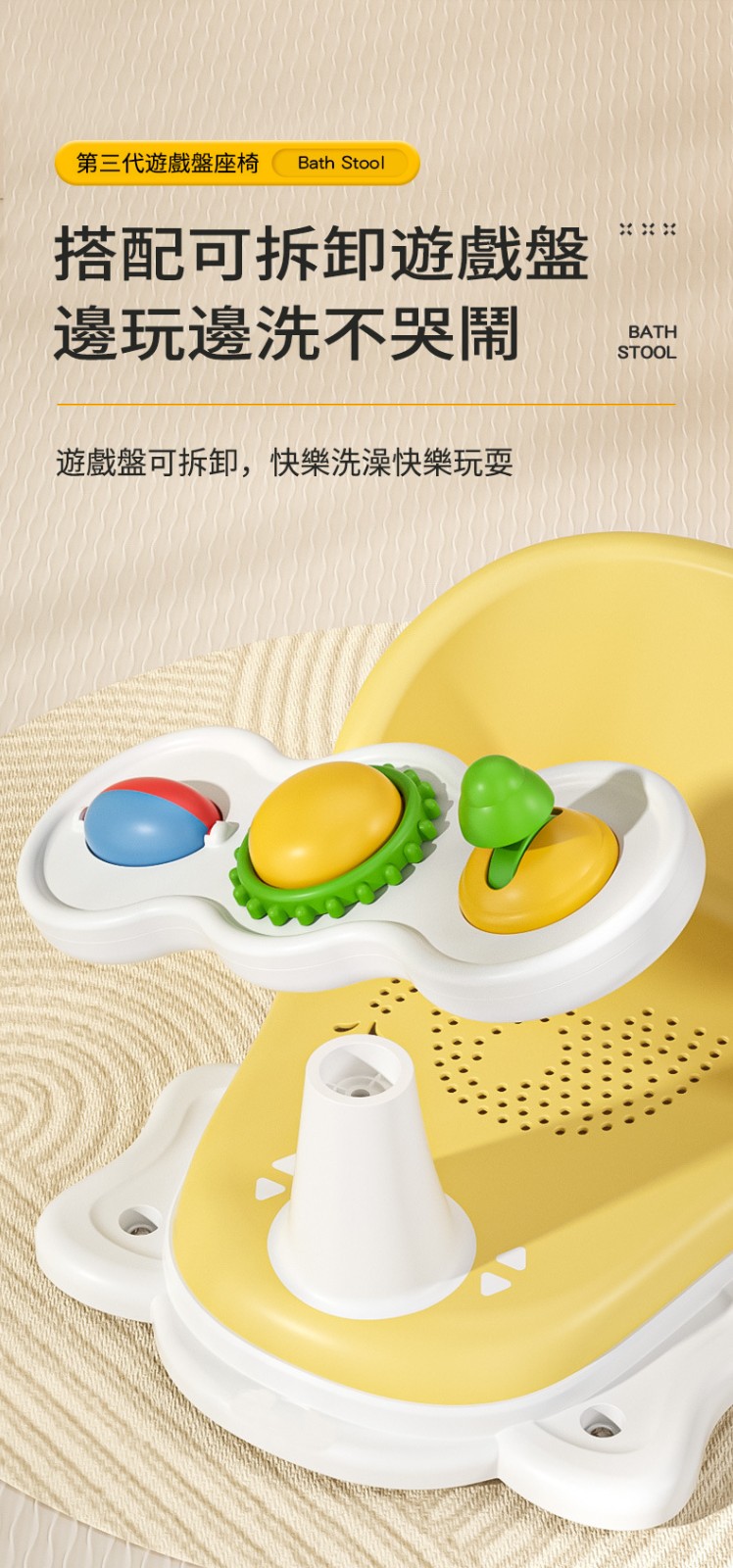 多功能洗浴座椅,讓寶寶隨心所欲!【第三代遊戲盤座椅】原生PP+TPE材質,強力吸盤,穩固不跑滑,網孔設計透氣不傷PP