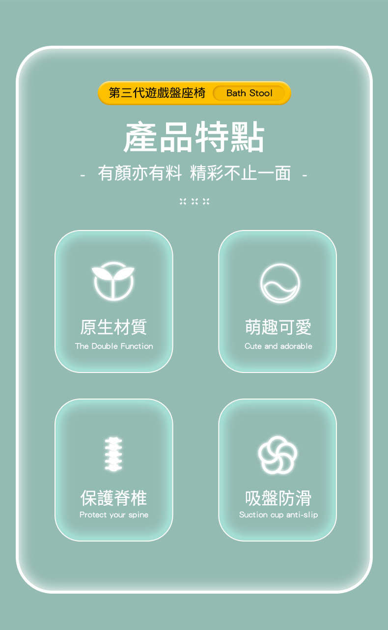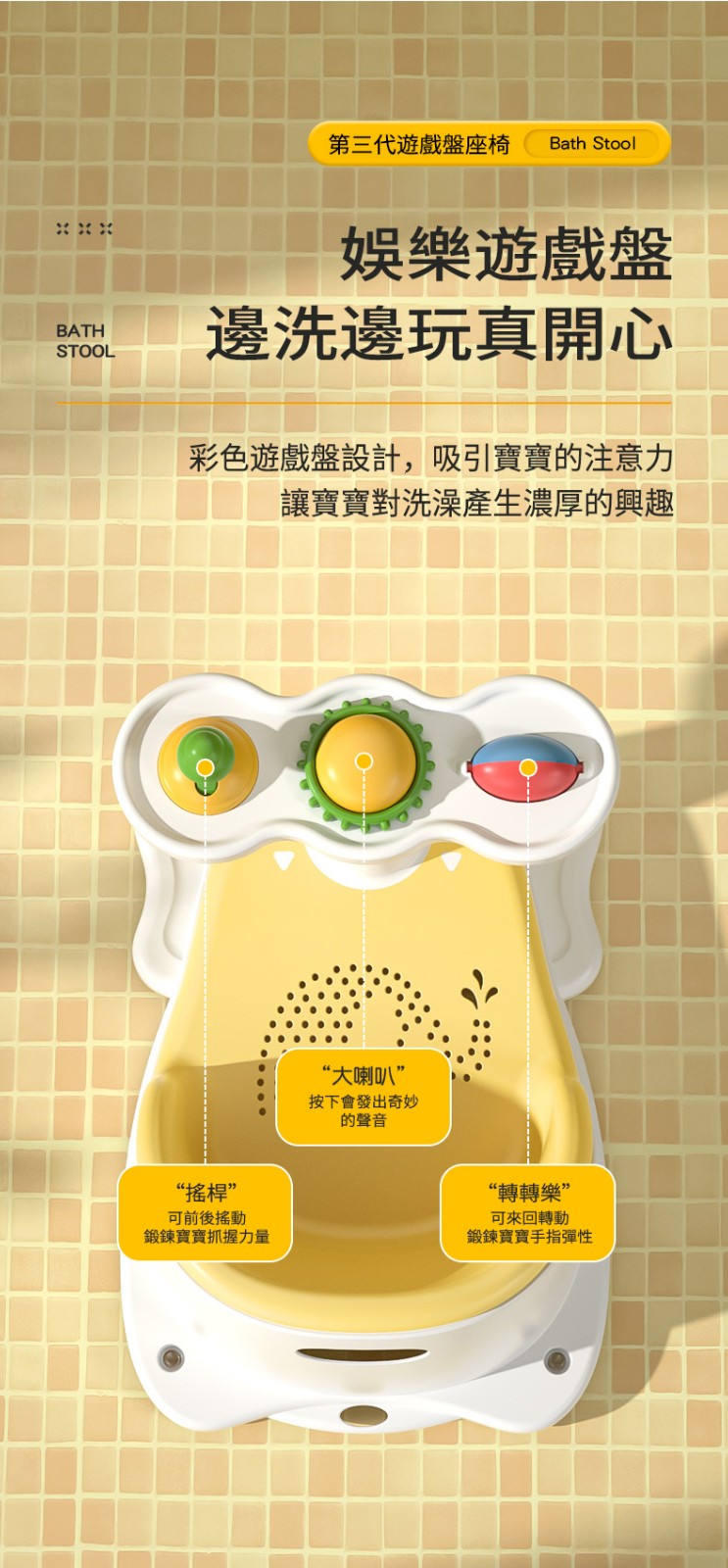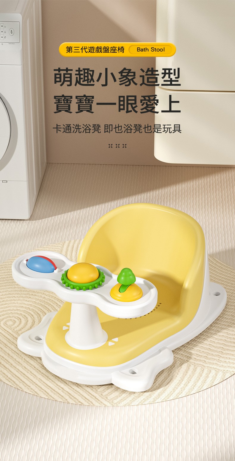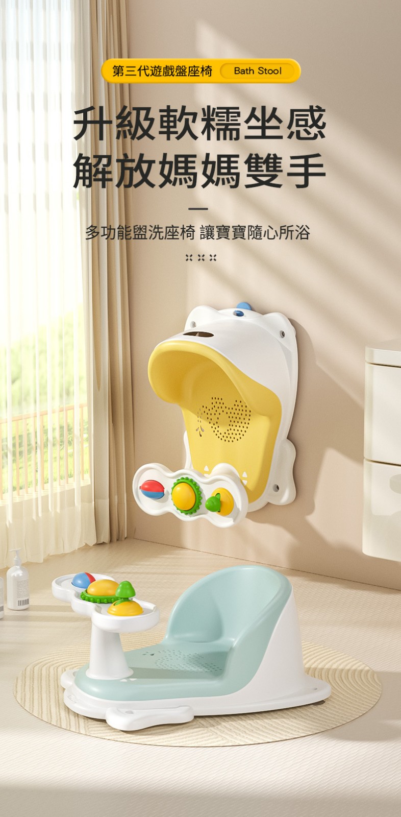 多功能洗浴座椅,讓寶寶隨心所欲!【第三代遊戲盤座椅】原生PP+TPE材質,強力吸盤,穩固不跑滑,網孔設計透氣不傷PP
