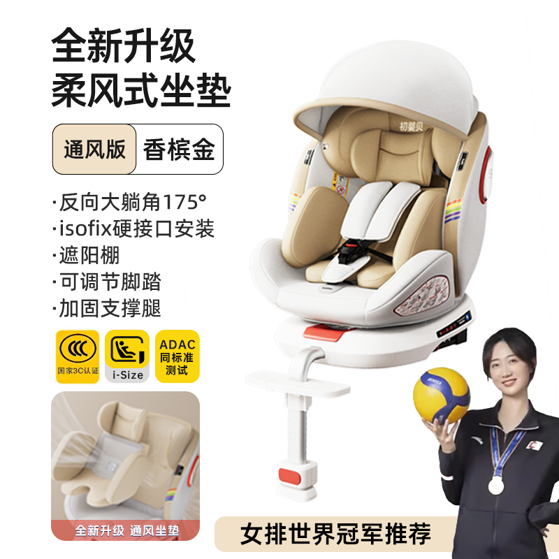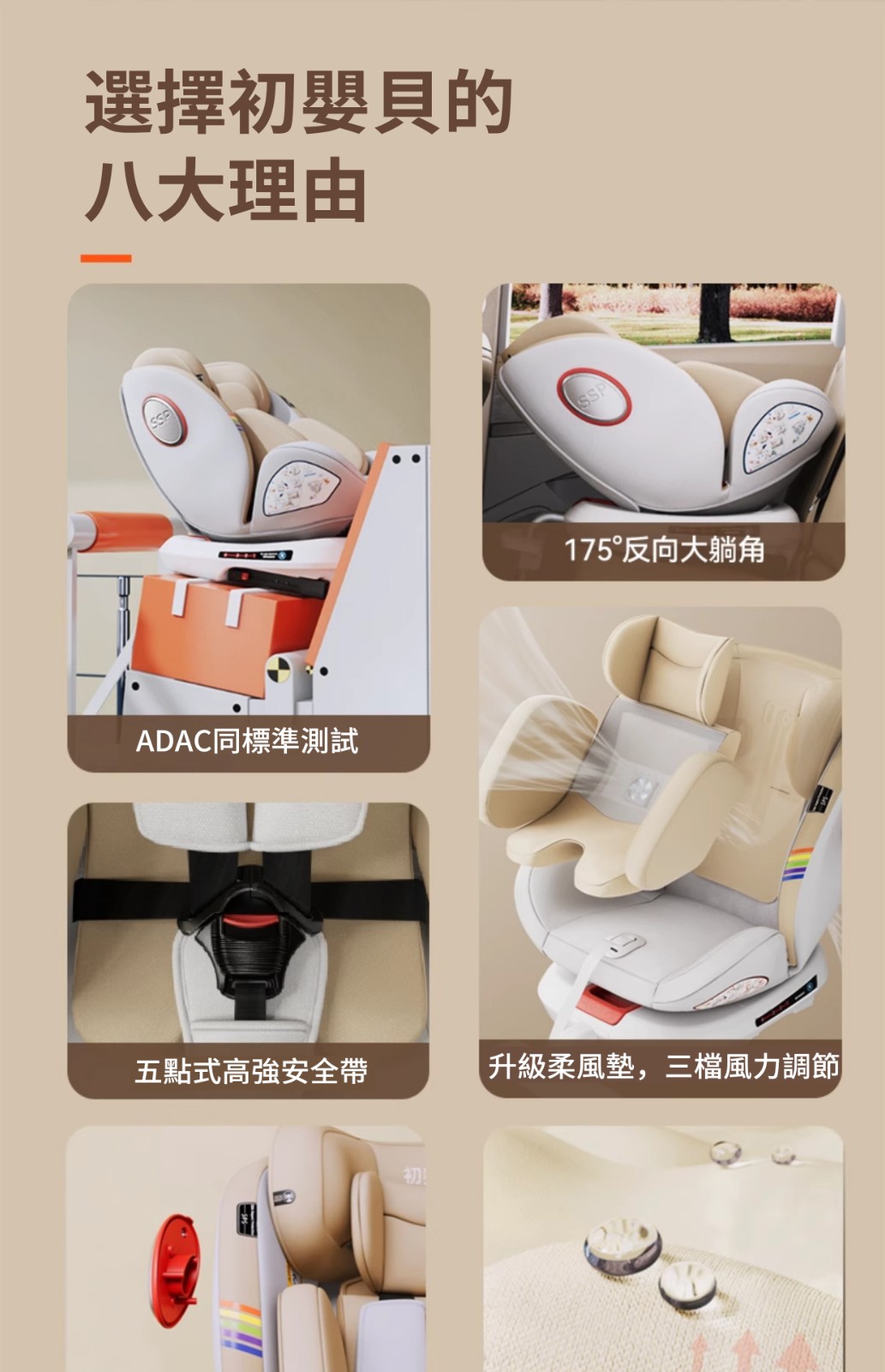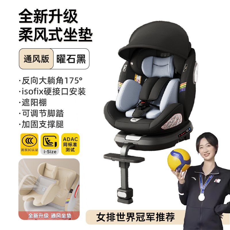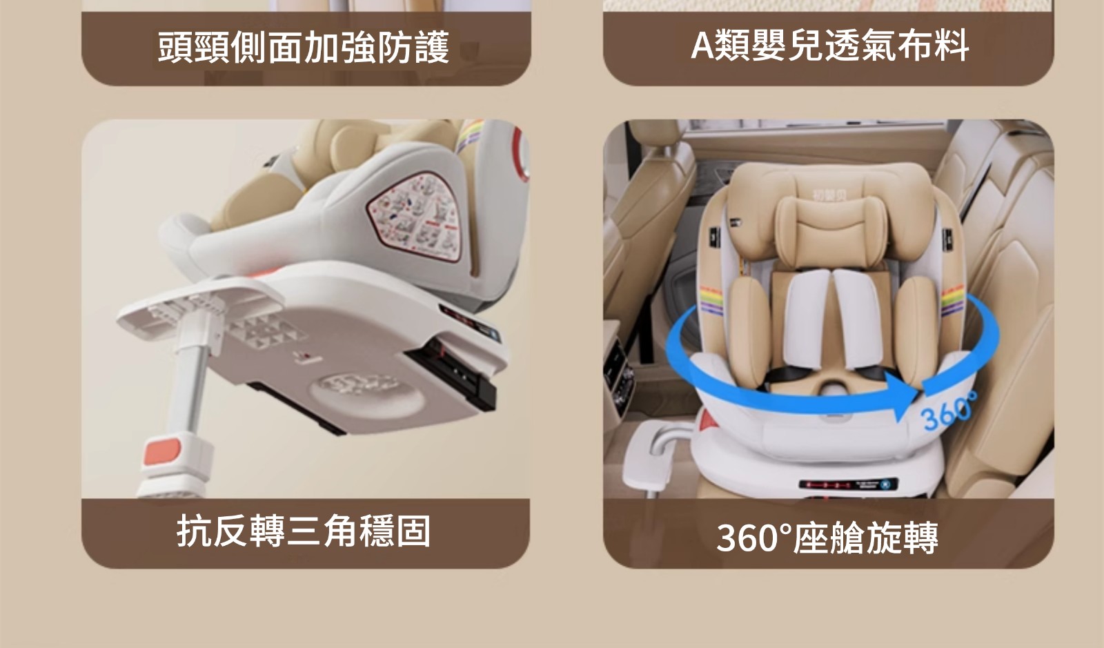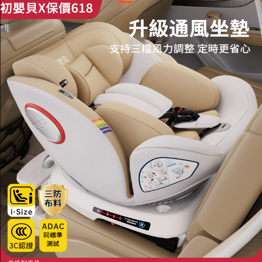通風版【I-SIZE認證】【ADAC測試通過】有通風+175°大躺角+支撐腿+遮陽棚