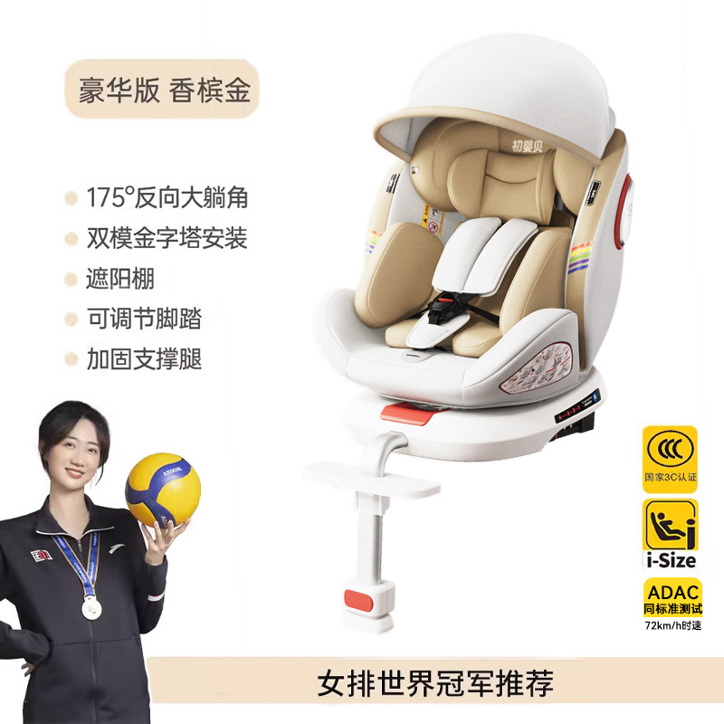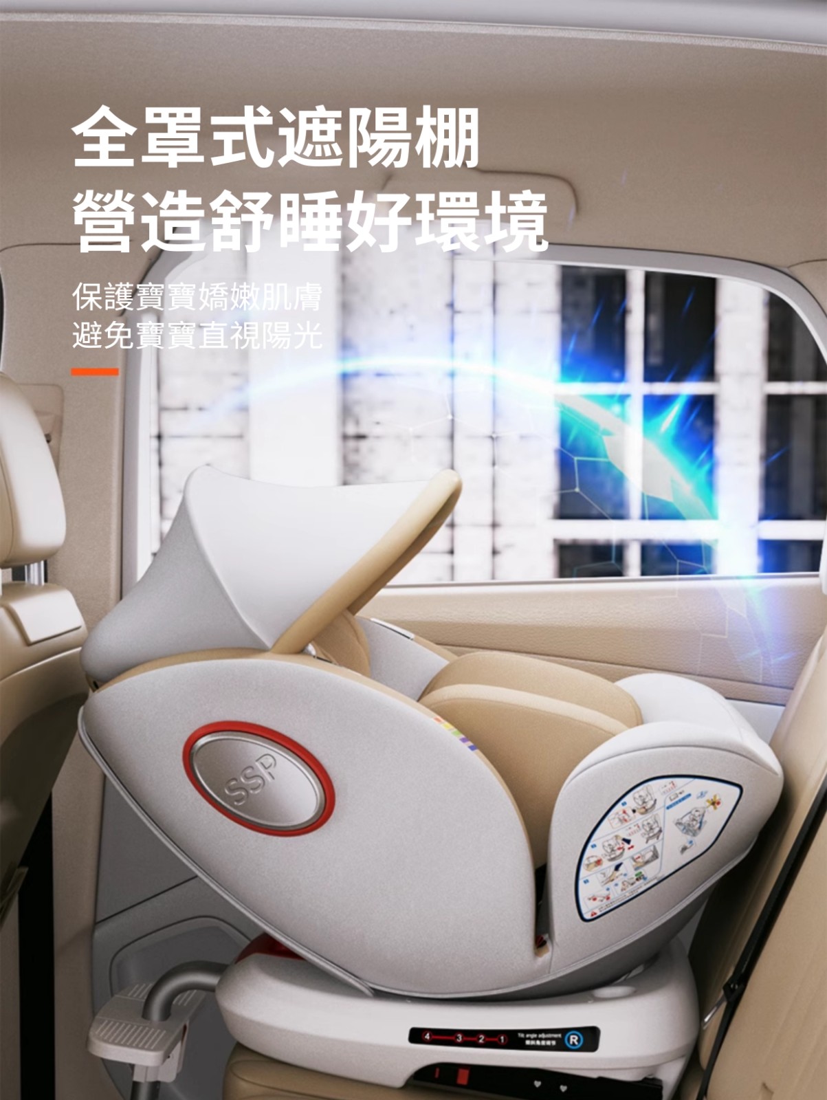 豪華版【I-SIZE認證】【ADAC測試通過】175°大躺角+支撐腿+遮陽棚