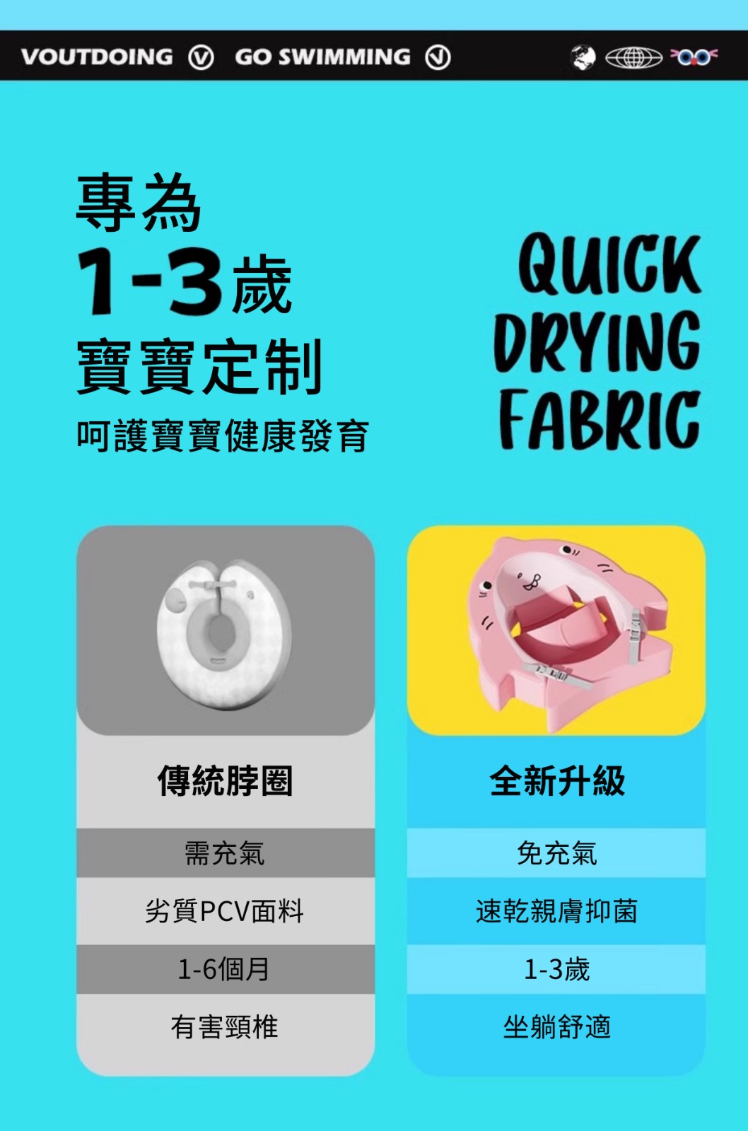 不勒脖、不壓頸!爸媽安心首選!【Voutdoing腋下游泳圈】可躺可浮腋下圈,新生寶寶也能安心玩水!